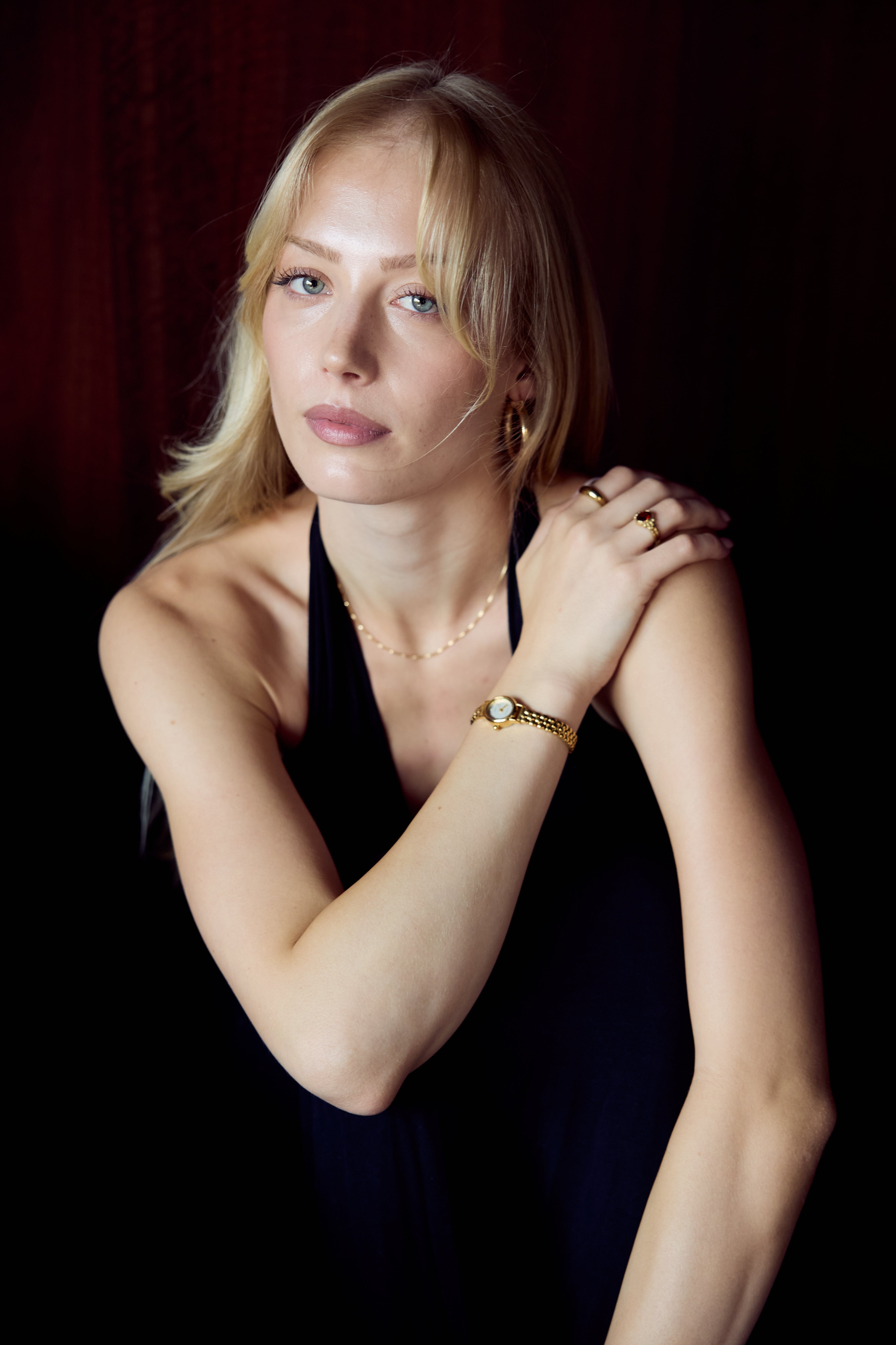 Our campaign was shot inside the Hyde, Melbourne’s iconic Art Deco hotel, a space that perfectly captured the elegance and romance of the golden era. The curves, the gilded details, the soft glow of the interiors, it all became the stage for our modern muse.