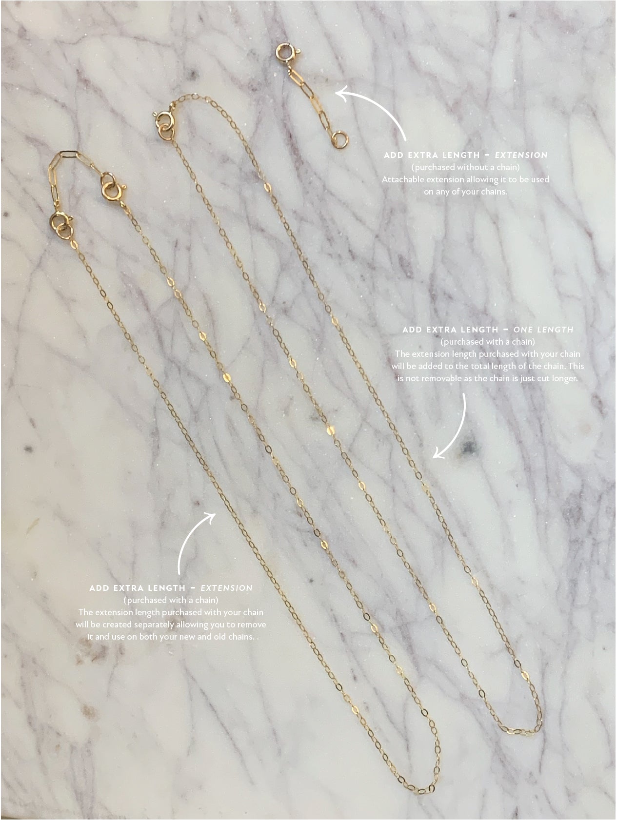 Looking for a little flexibility? Our extension option allows you to adjust the length of your chains for the perfect fit.
