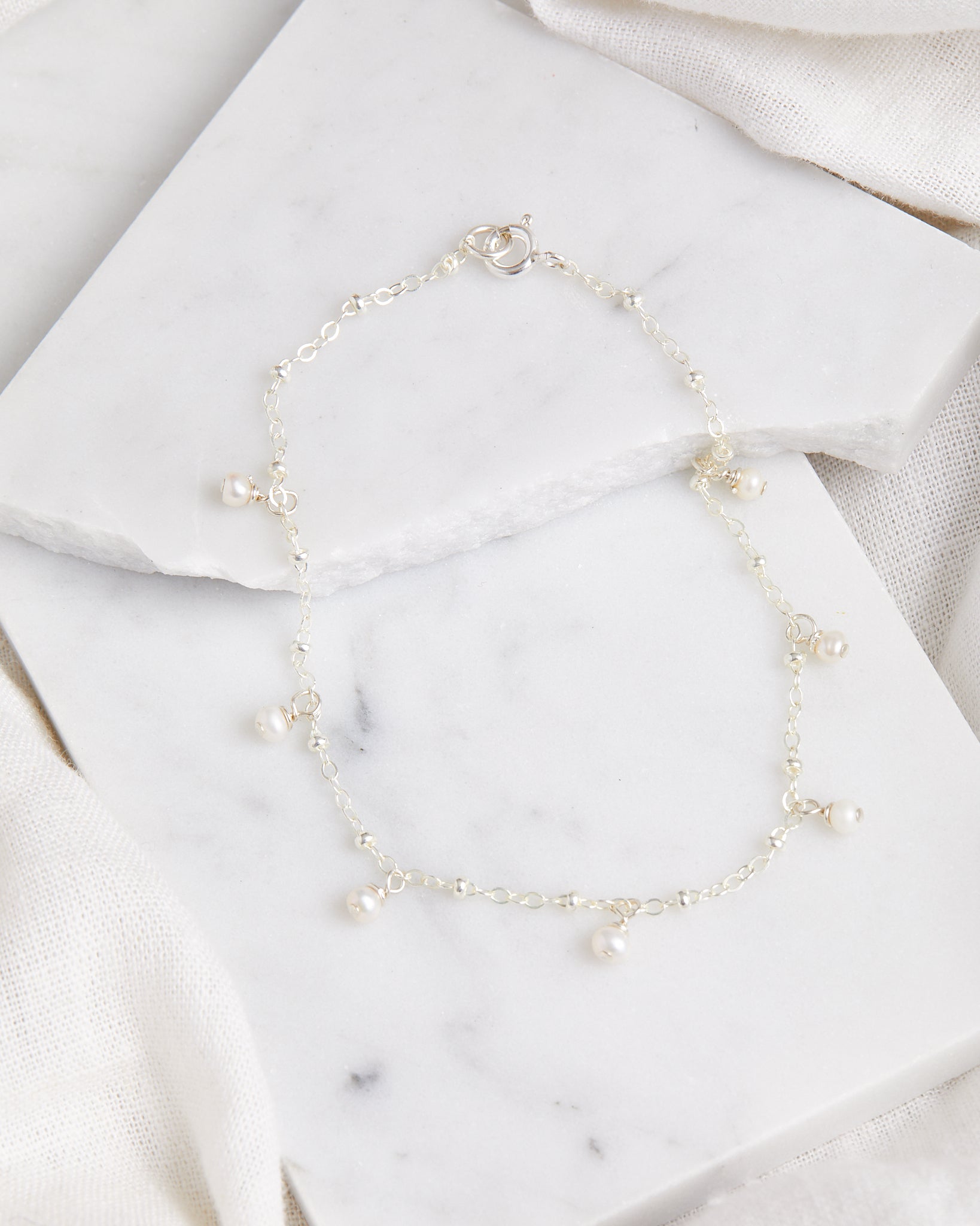 The perfect everyday piece - the Bella Anklet is handcrafted from high-quality 14k Gold Filled or 925 Sterling Silver, featuring real freshwater pearls for a timeless finish.