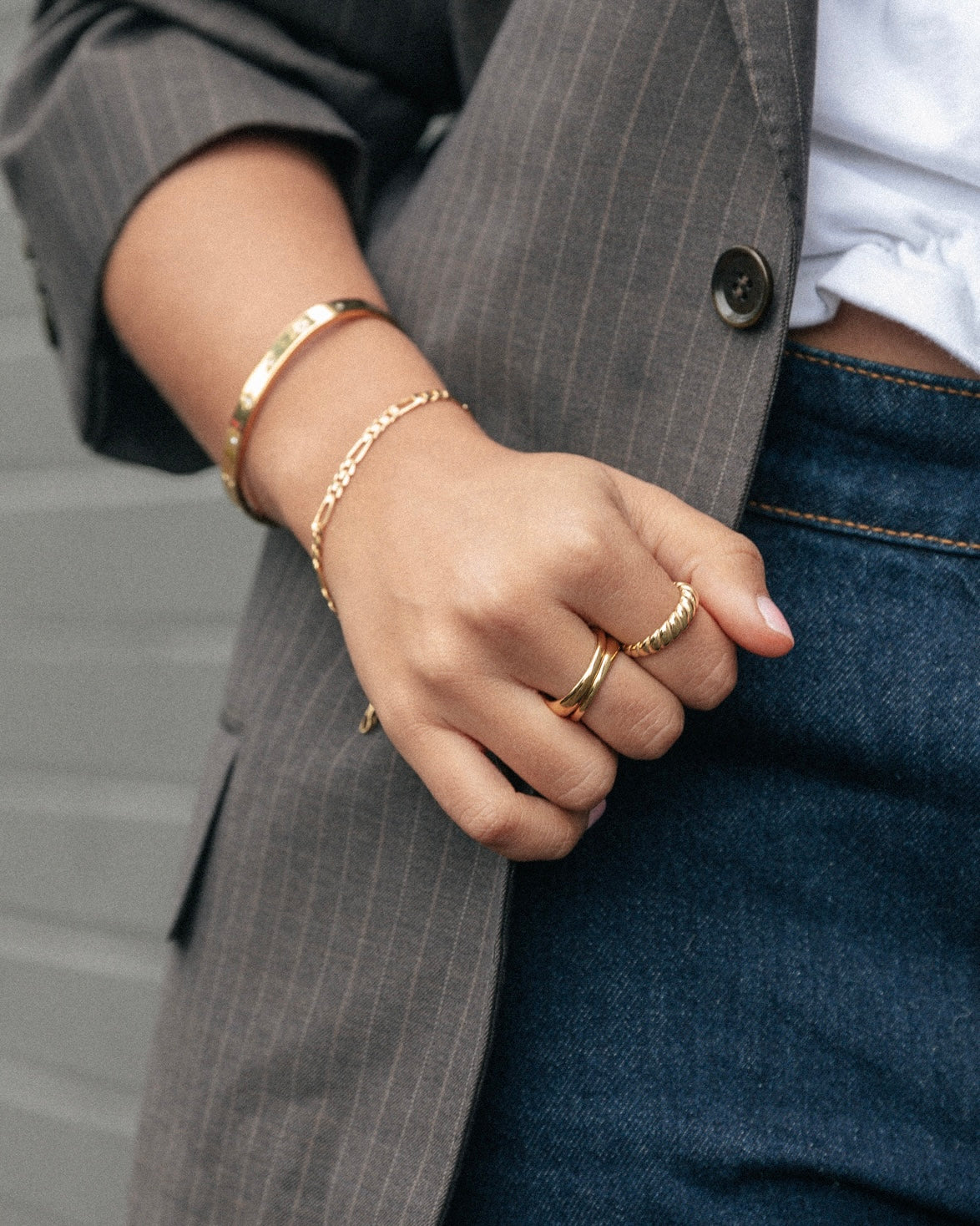 Gold Filled is made by pressure bonding a super thick layer of pure gold over silver. This means that the product acts and wears like pure gold & is waterproof. It also makes items hypoallergenic and great for sensitive skin.
