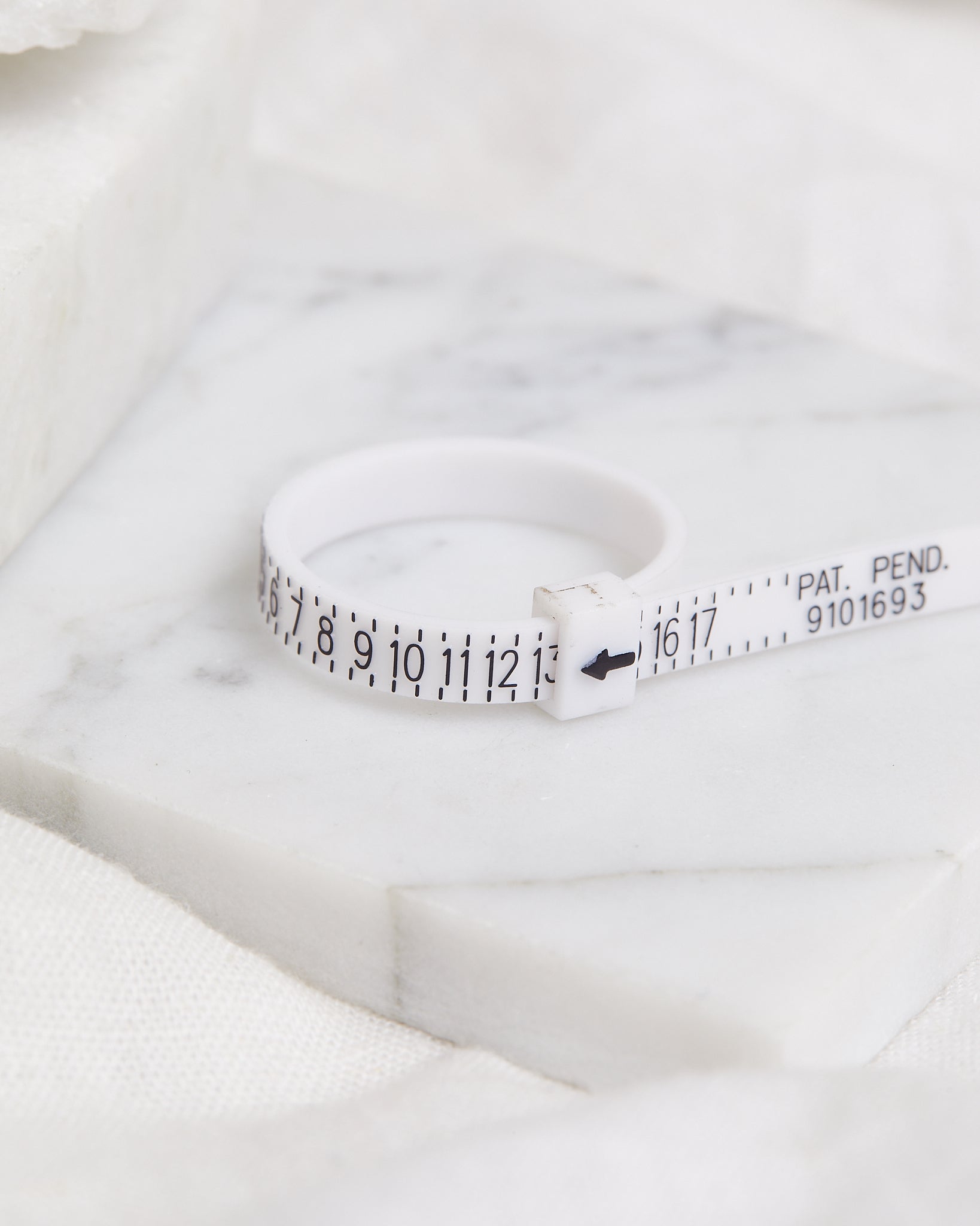 Loop the sizer around each of your fingers sliding it on and off comfortably making sure it’s not too tight or too loose