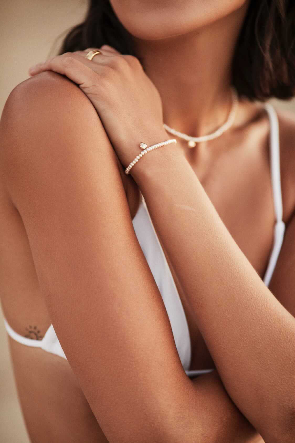 Ally wears hers with the Chunky Freshwater Pearl Bracelet and the Herringbone Bracelet.