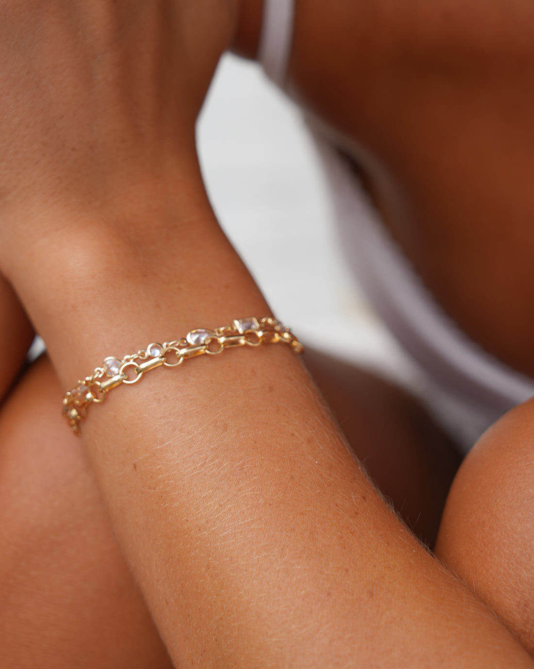 Gold Filled is made by pressure bonding a super thick layer of pure gold over silver. This means that the product acts and wears like pure gold & is waterproof. It also makes items hypoallergenic and great for sensitive skin.