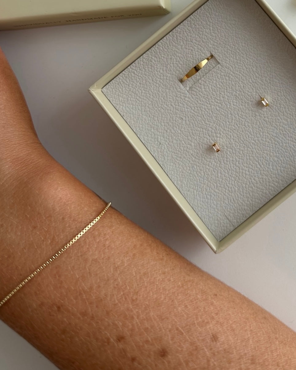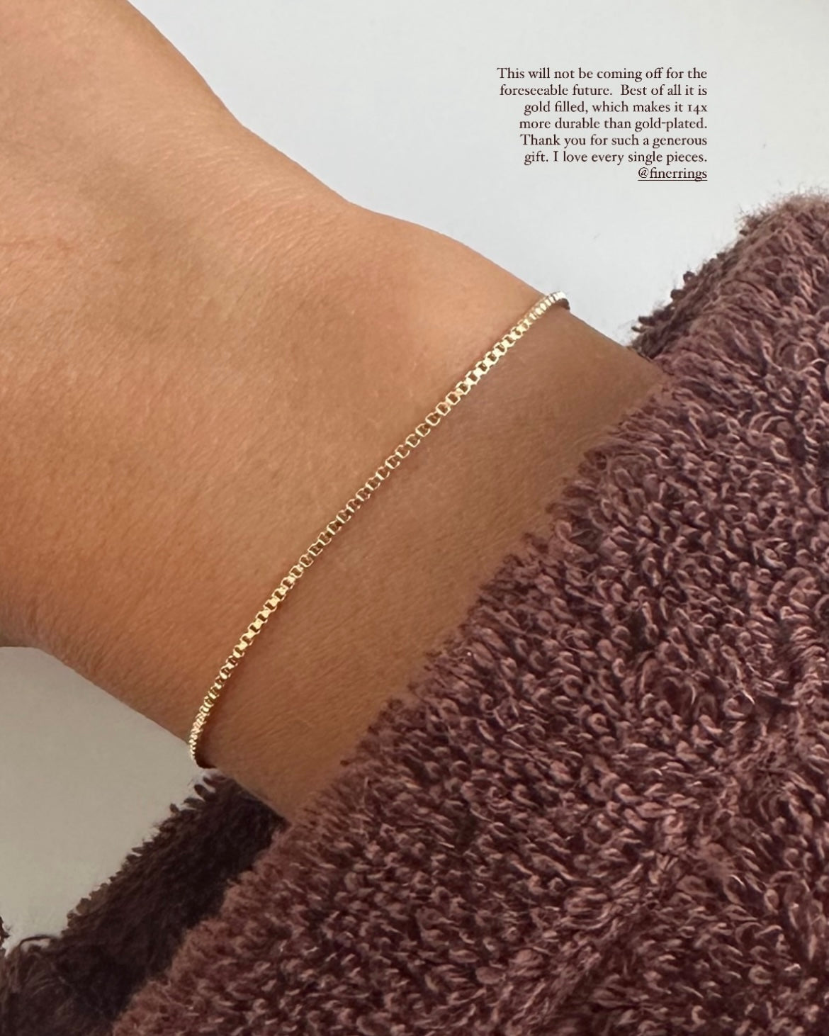 Gold Filled is made by pressure bonding a super thick layer of pure gold over silver. This means that the product acts and wears like pure gold & is waterproof. It also makes items hypoallergenic and great for sensitive skin.