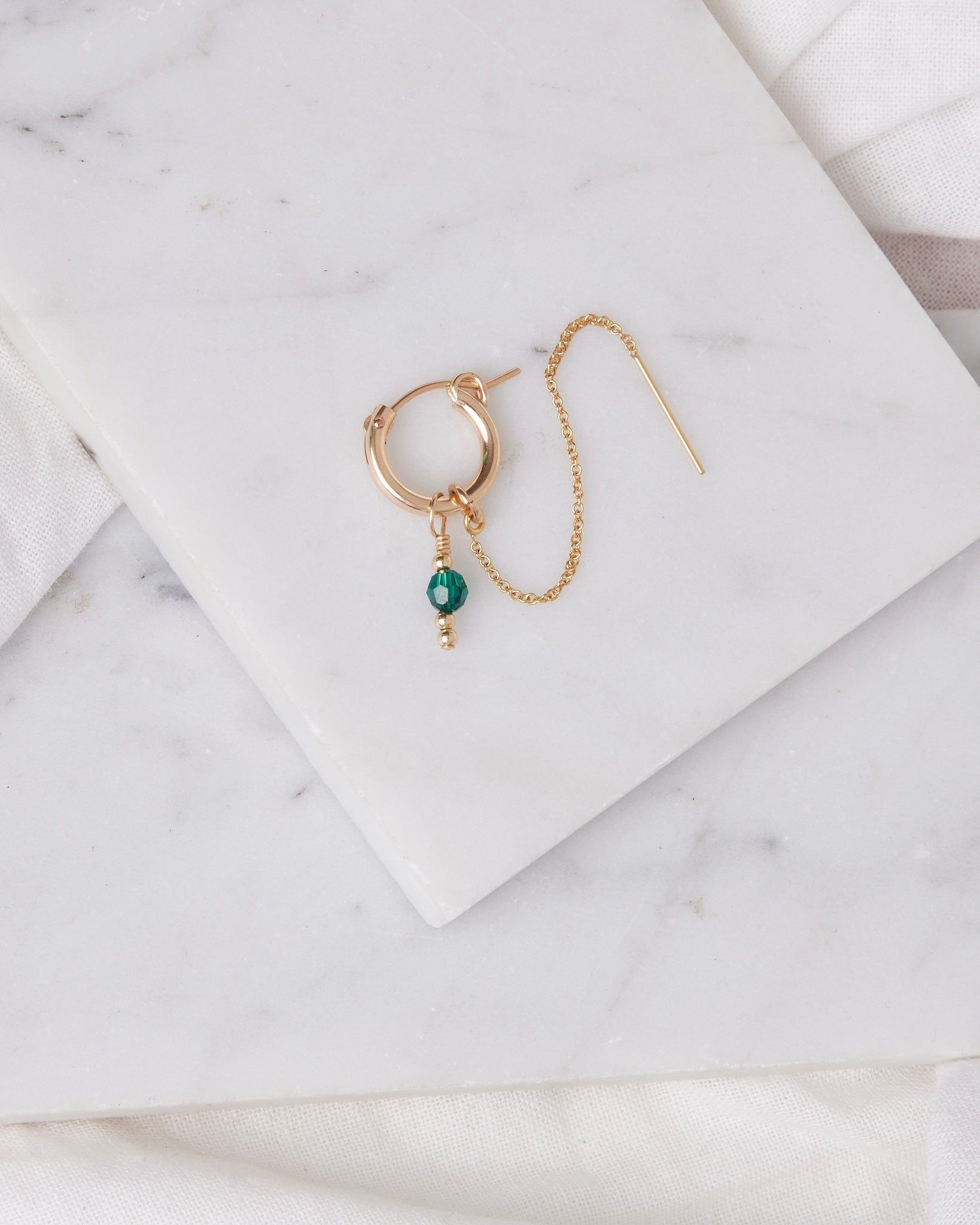 Materials: 14K Gold filled or 925 sterling silver hoop, thread and a beautiful Swarovski gemstone or pearl
