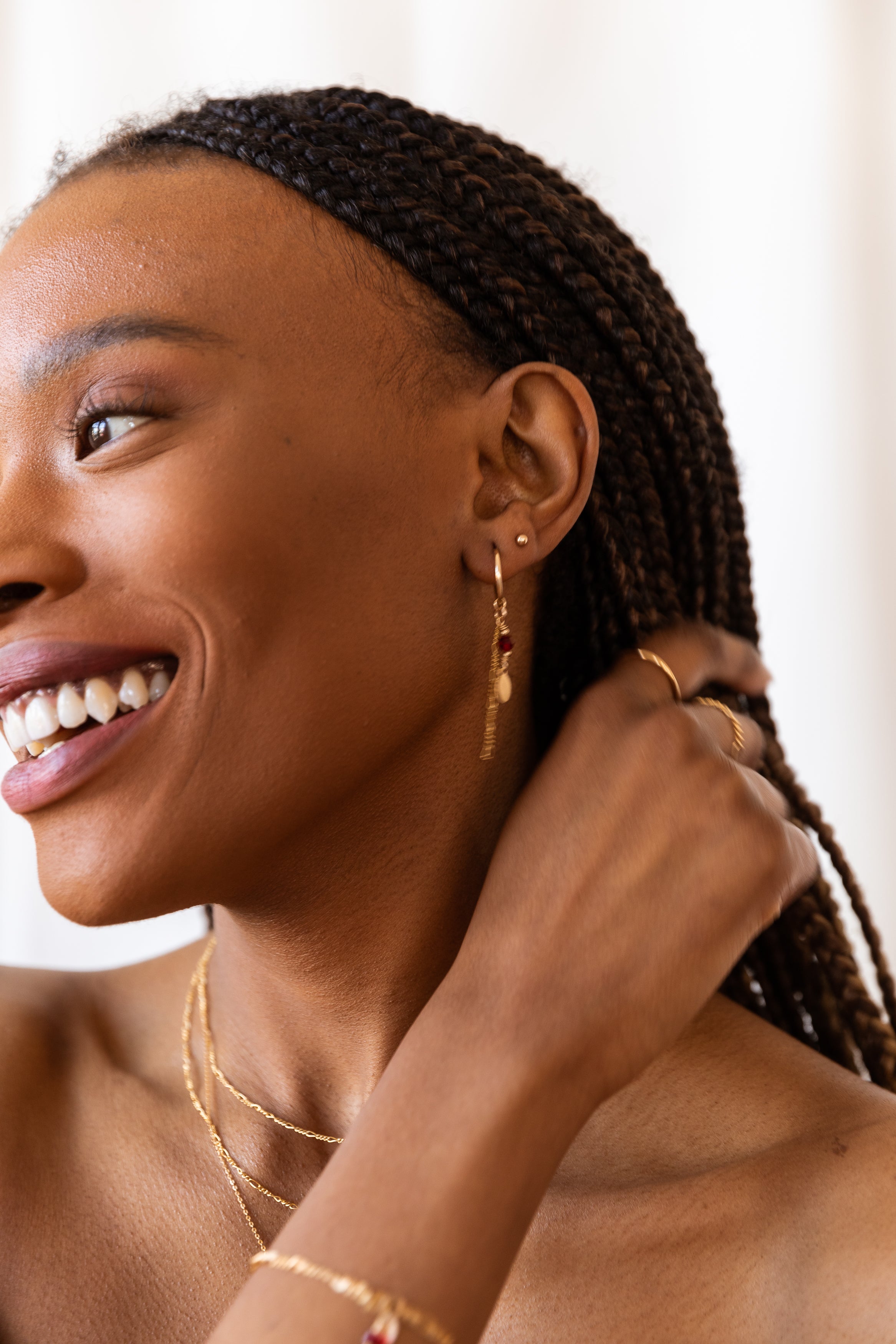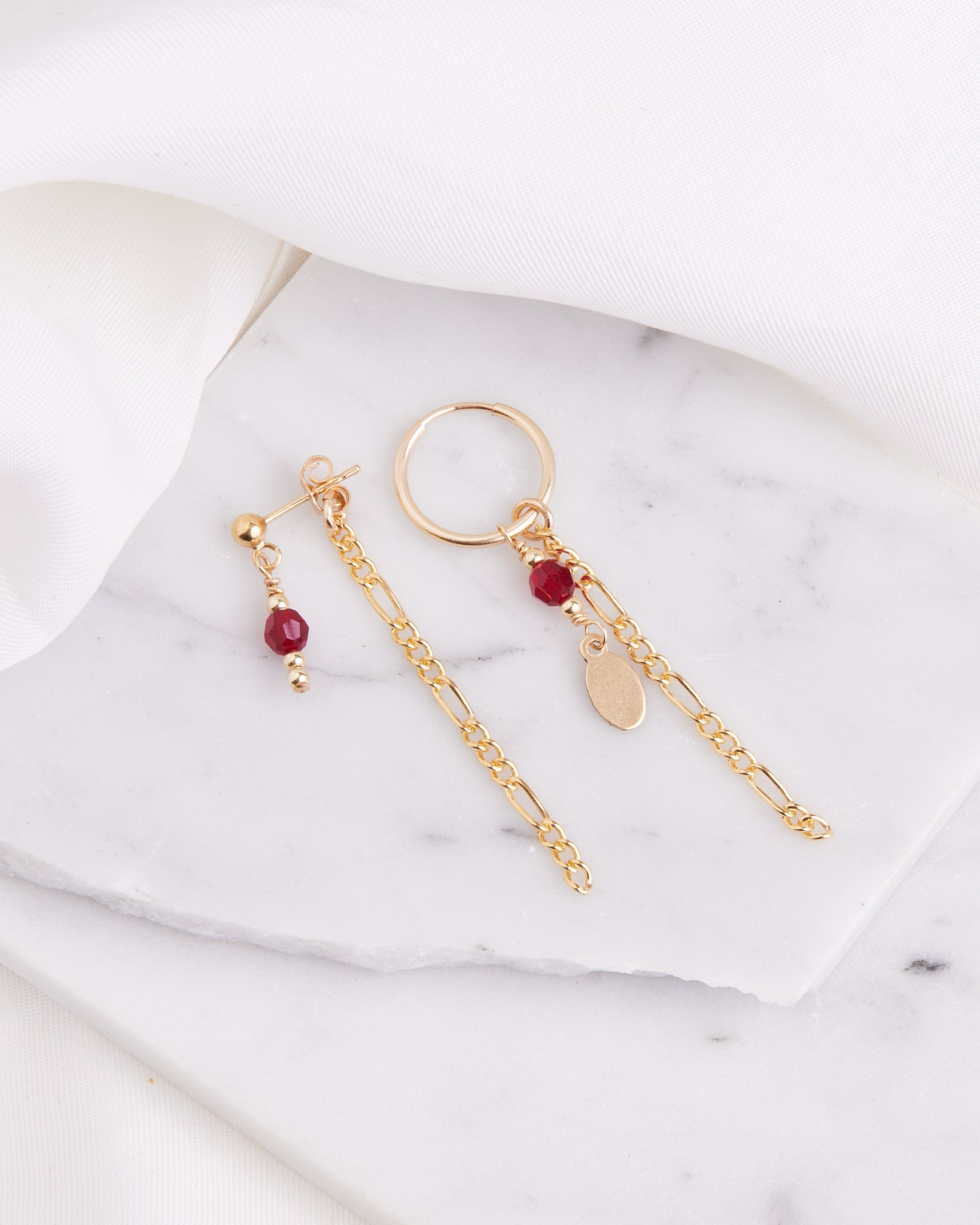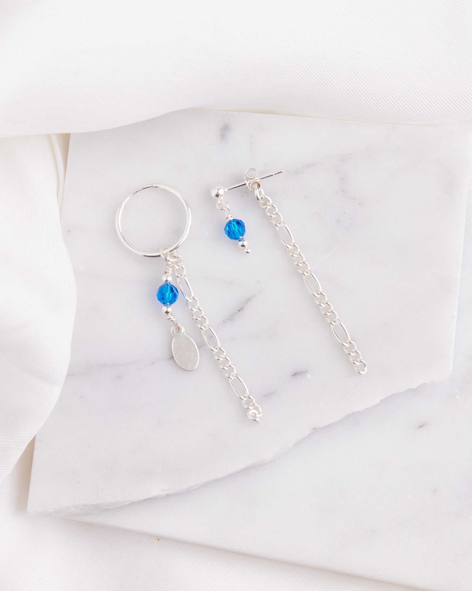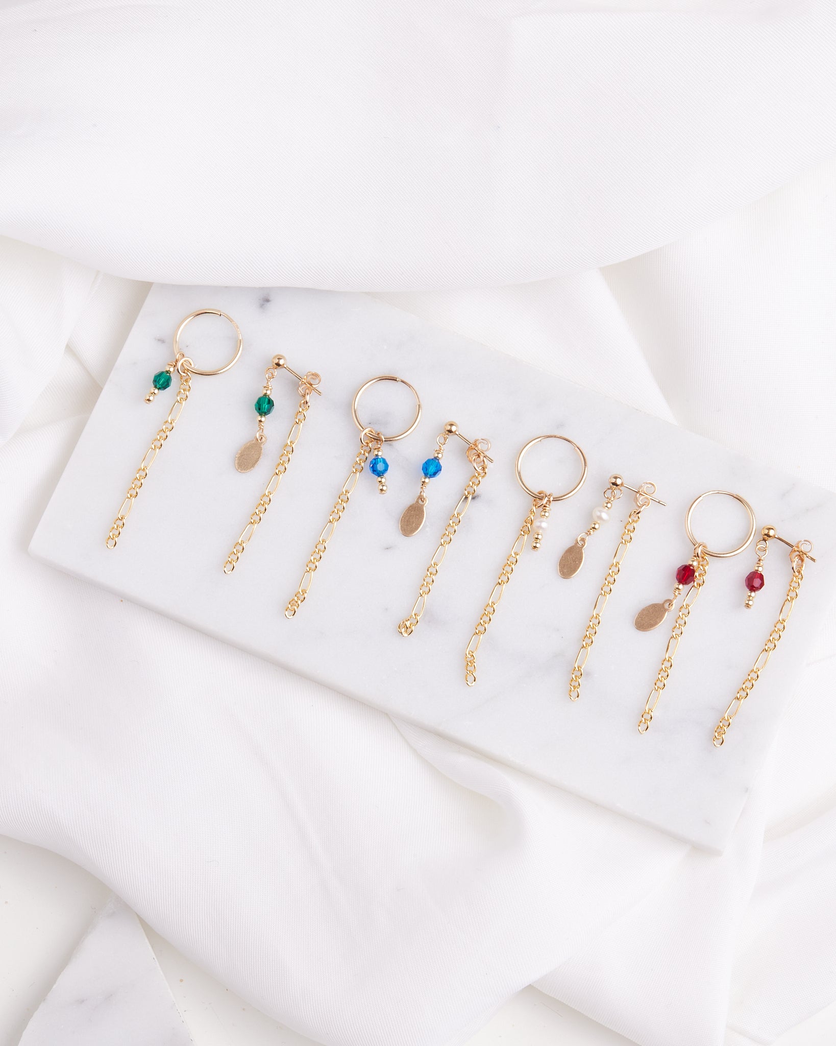 Spice up your earring stack with our latest mix n match set. Includes a ball stud with chain and Swarovski detailing along with a matching twist hoop.