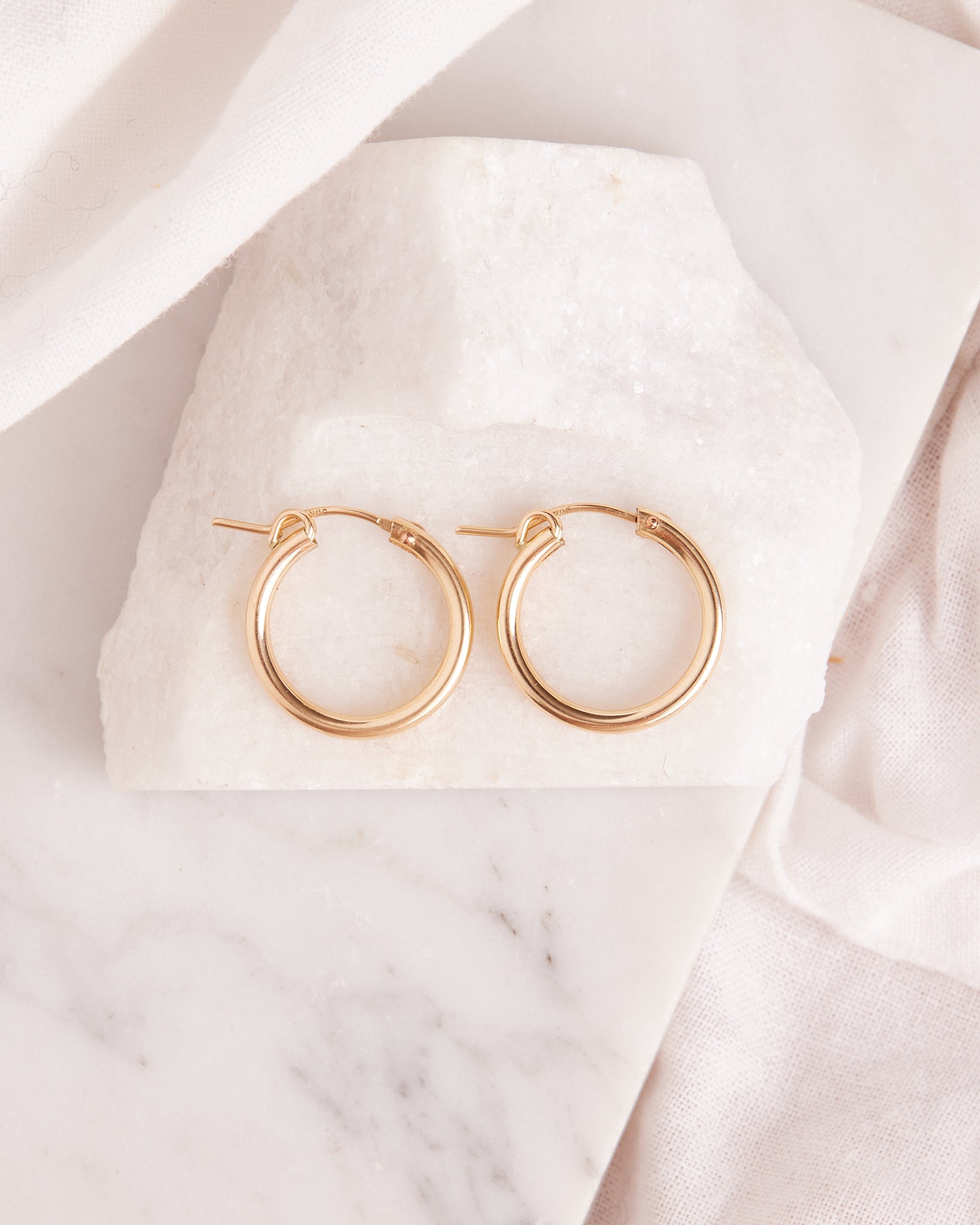 Our best selling Perfect Small Hoops (14mm), now available in a larger size (18mm)!