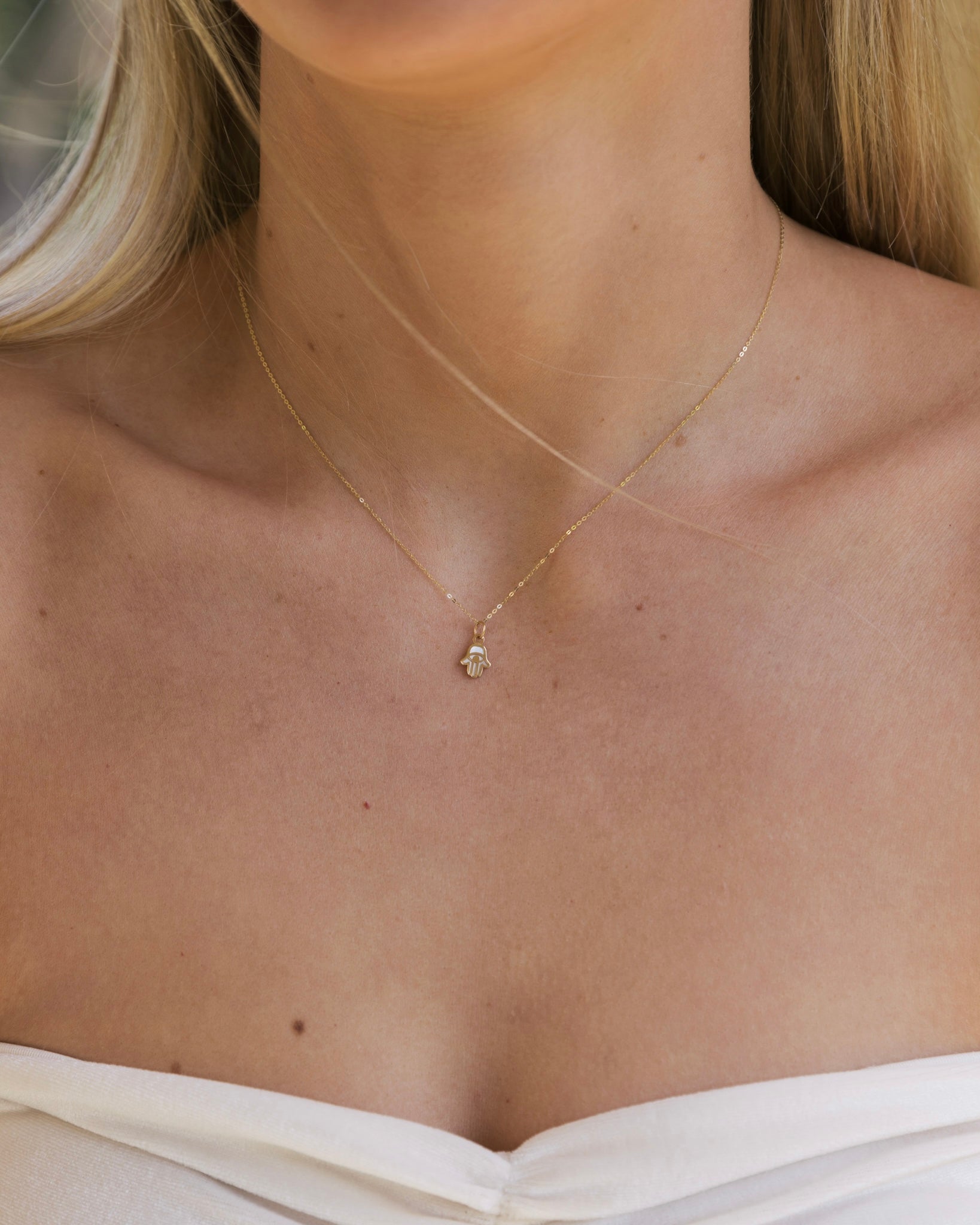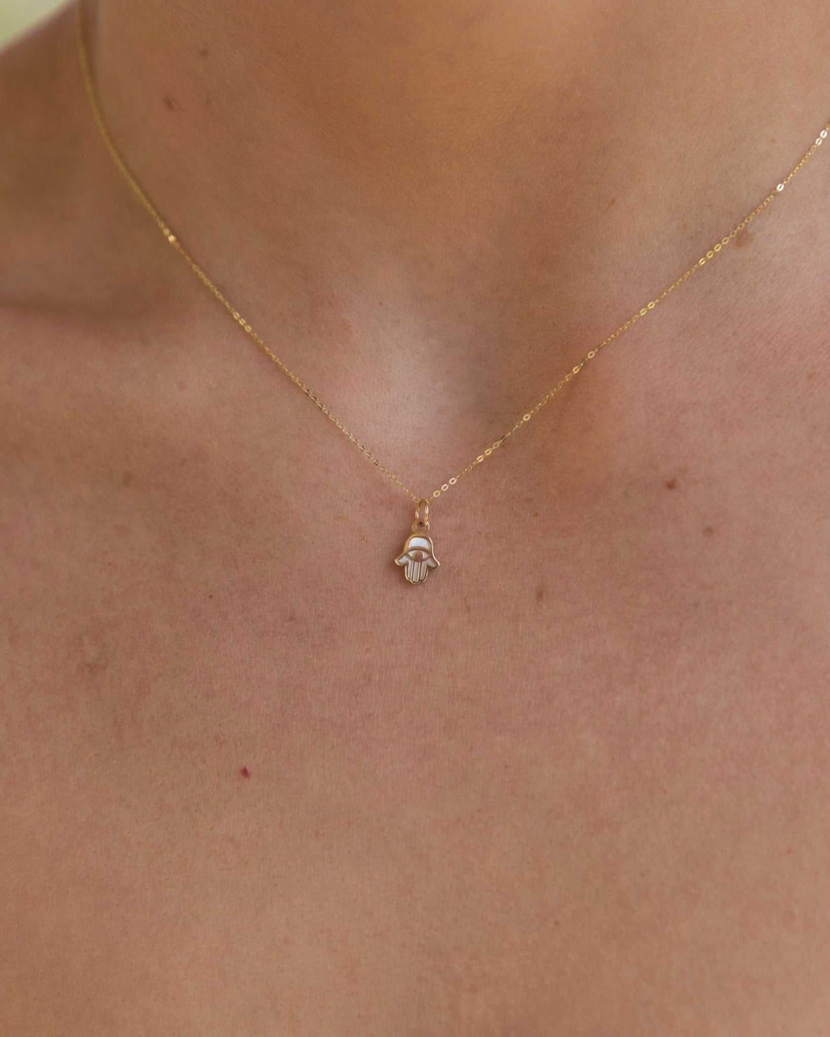 Solid Gold Hamsa Pendant Necklace