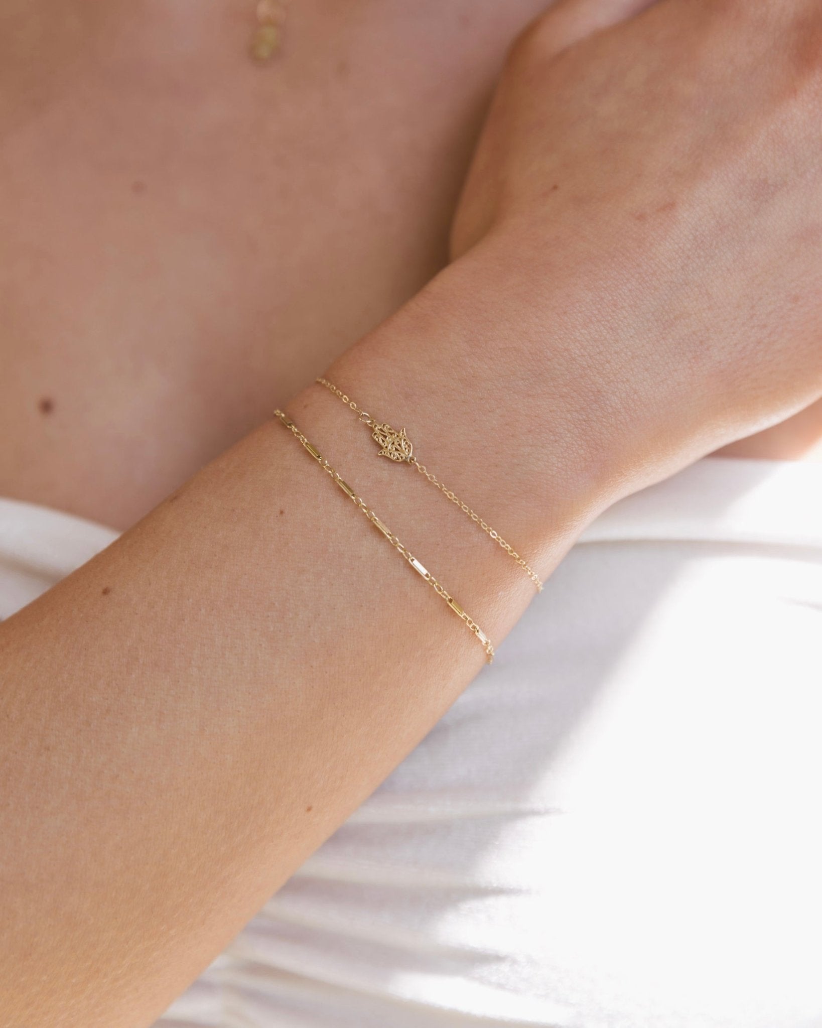 Solid Gold Hamsa Charm Bracelet