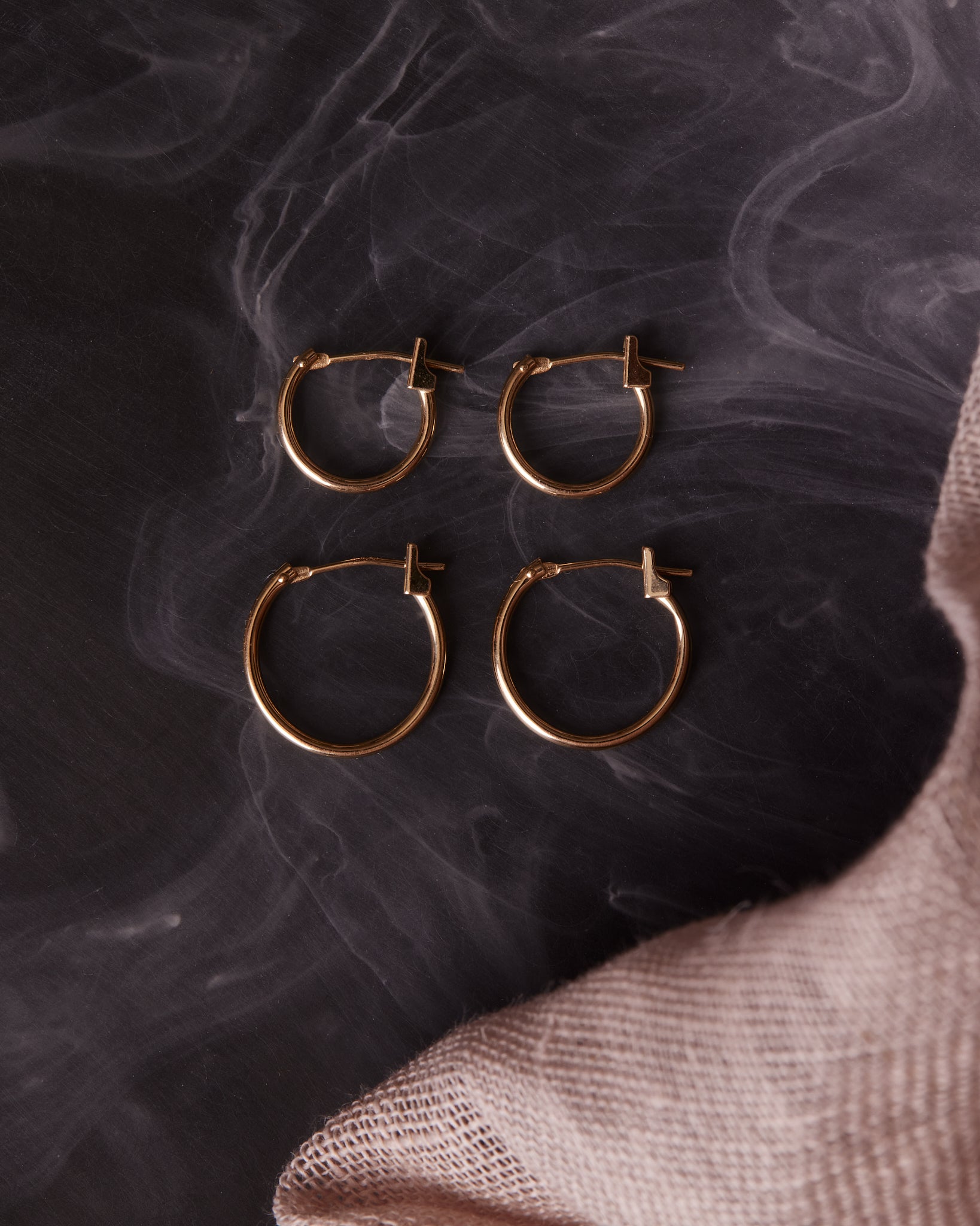 Made from 14k solid gold these rounded hoops feature an angled v closure and are perfect on their own or styled with statement pieces.