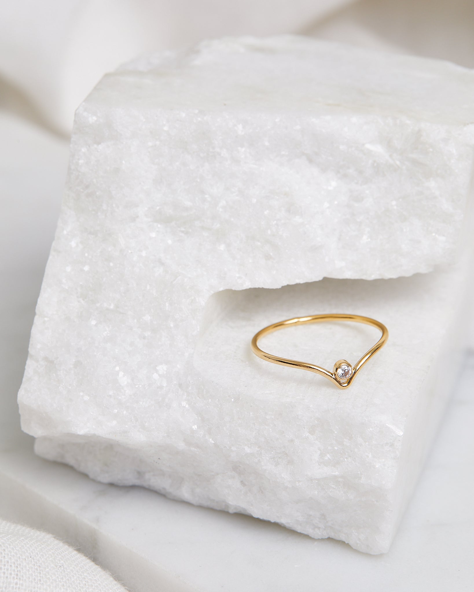 Perfectly placed CZ stone nestled between the chevron peak.