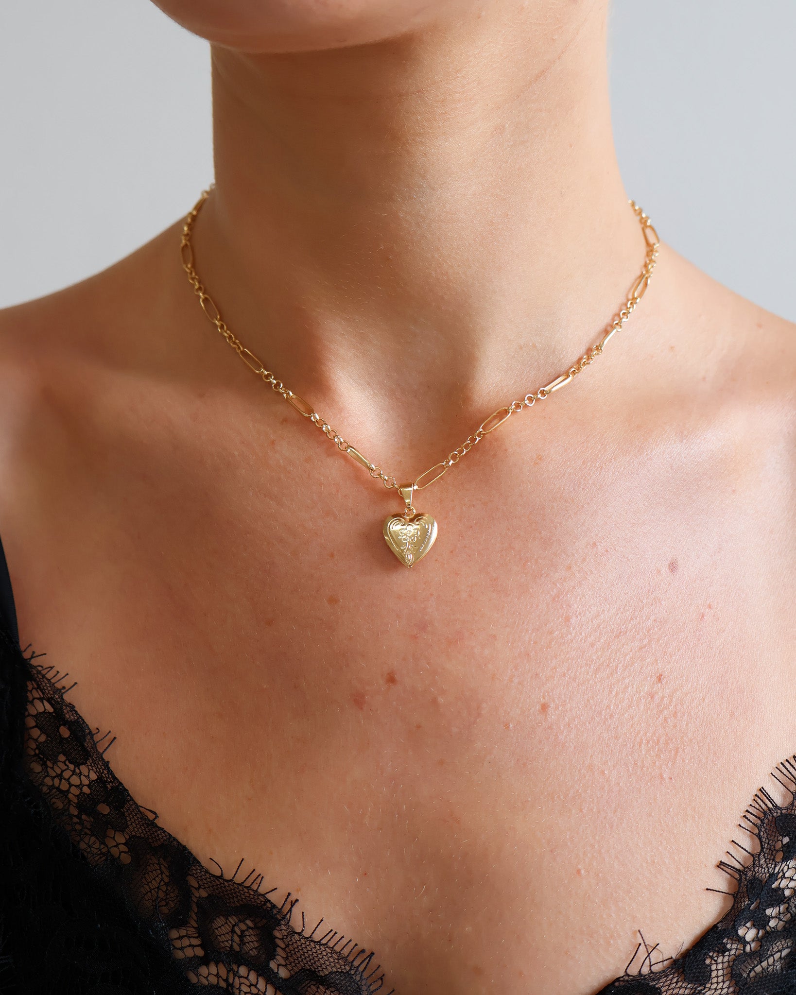 A sentimental piece with a vintage touch. The Vintage Heart Locket Necklace is designed to hold what matters most. Featuring a delicate heart-shaped locket with subtle vintage detailing, it opens to keep a photo close to you.
