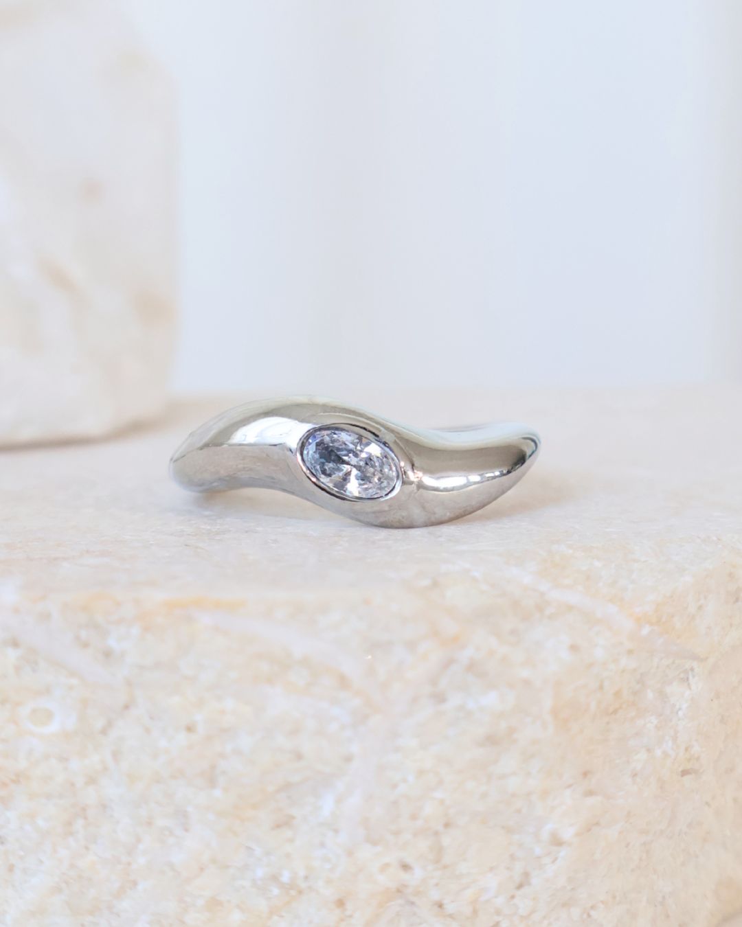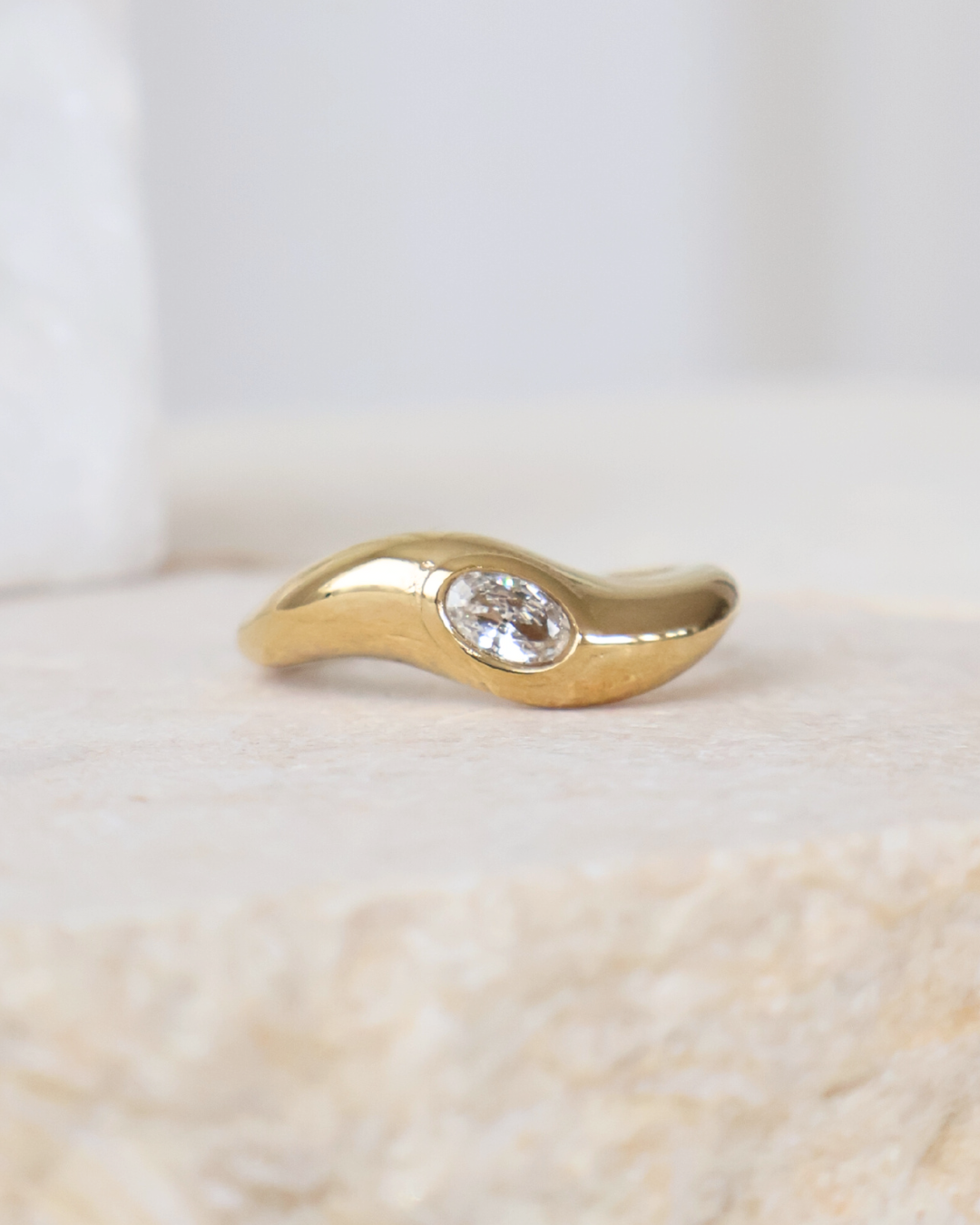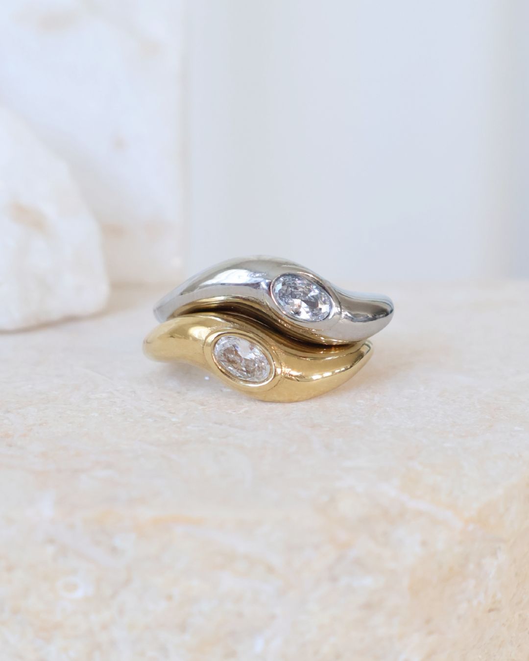 The Celeste Ring blends soft curves with subtle sparkle, featuring an organically shaped band and a clear CZ stone. Crafted from durable, tarnish-resistant stainless steel and available in both gold and silver finishes, it’s made for everyday wear. Stack it or wear it solo - either way, it brings effortless elegance to your jewellery collection.