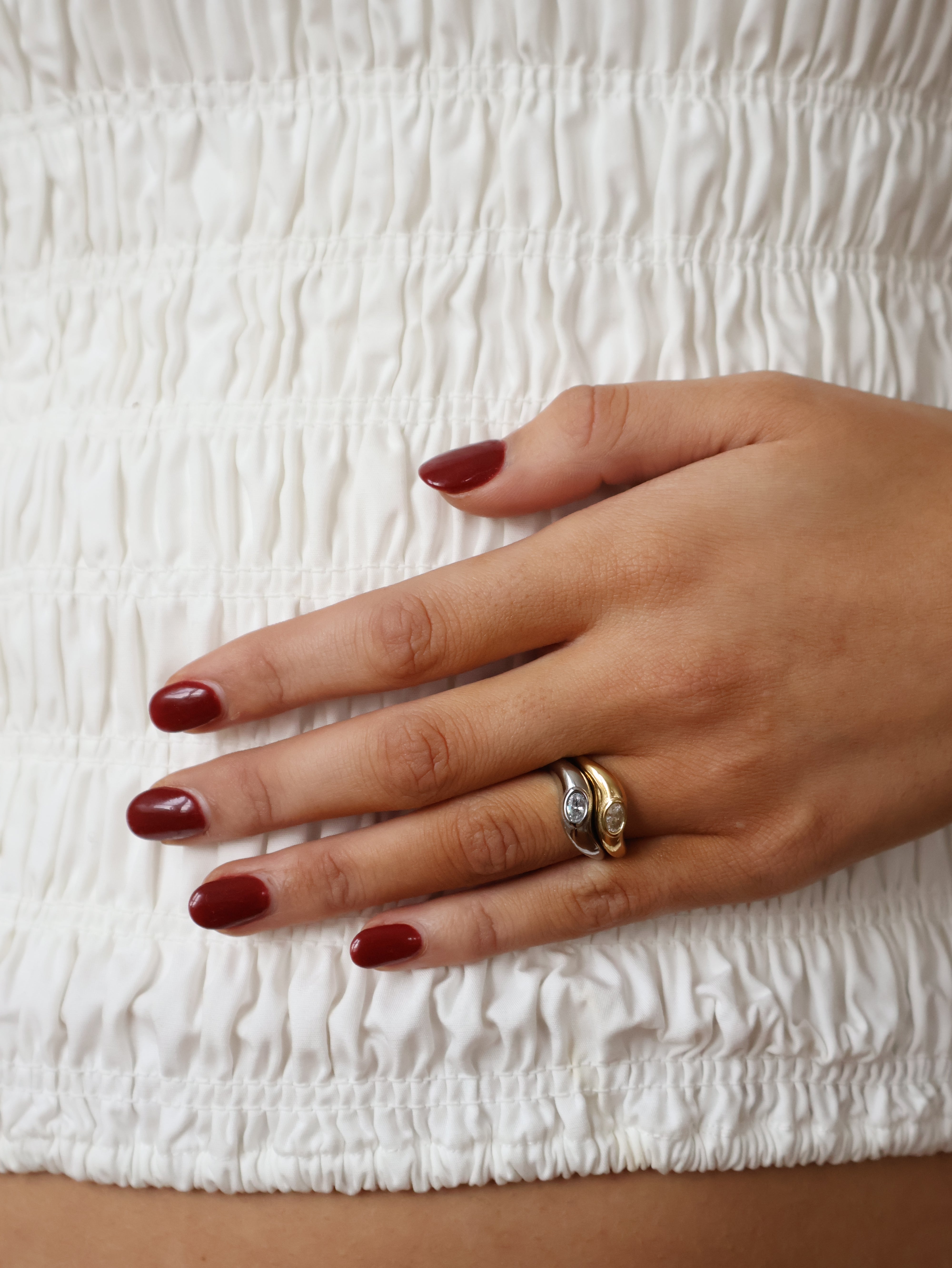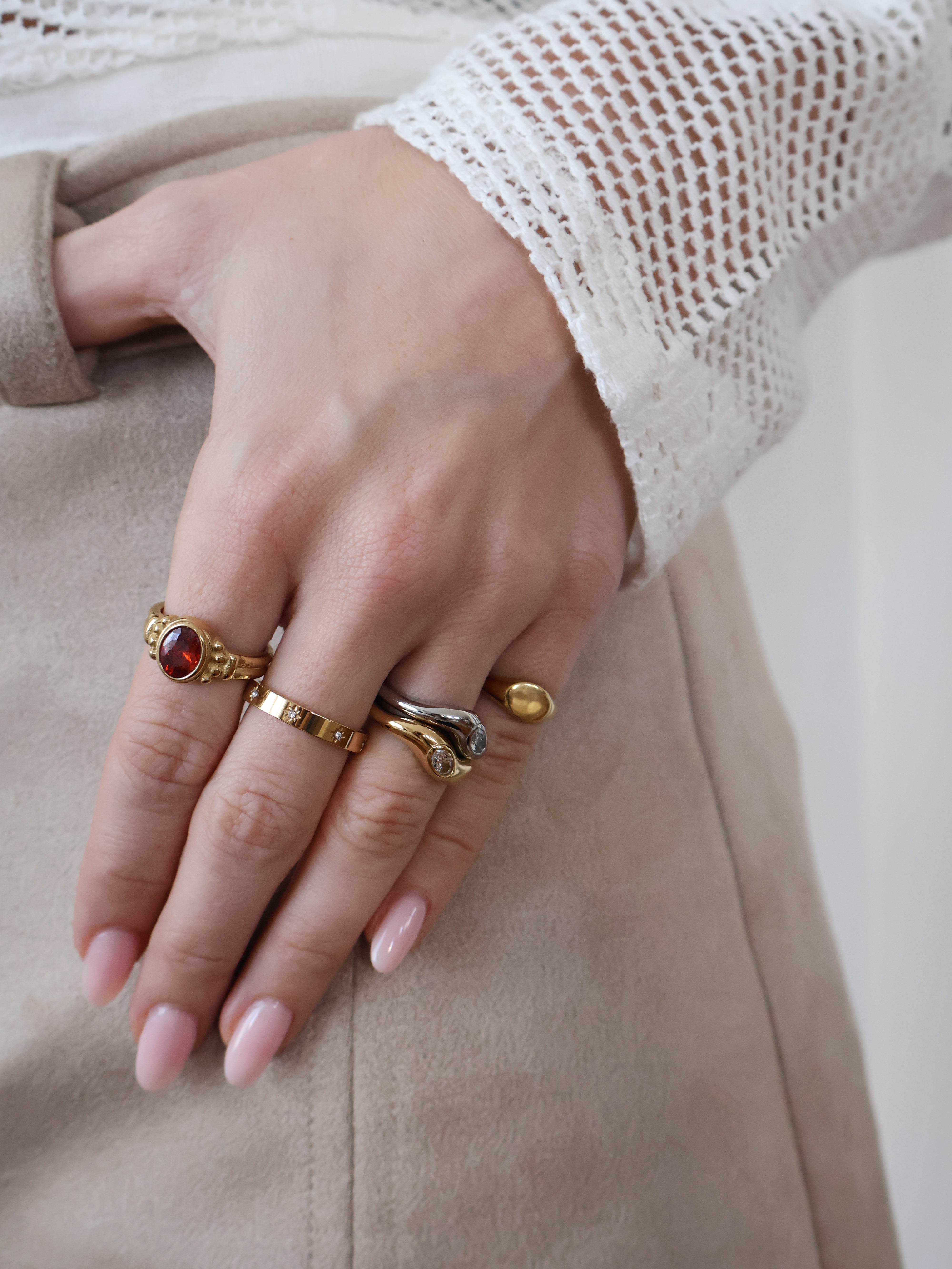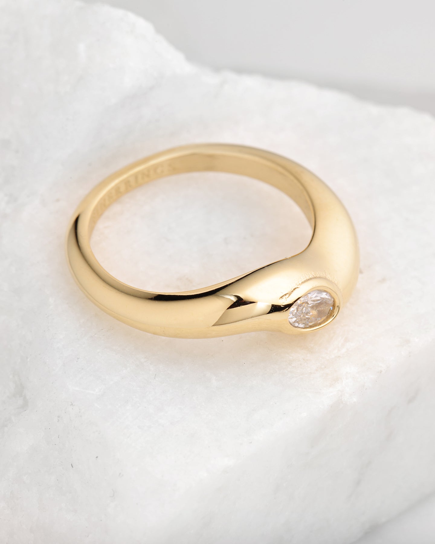 The Celeste Ring blends soft curves with subtle sparkle, featuring an organically shaped band and a clear CZ stone. Crafted from durable, tarnish-resistant stainless steel and available in both gold and silver finishes, it’s made for everyday wear. Stack it or wear it solo - either way, it brings effortless elegance to your jewellery collection.