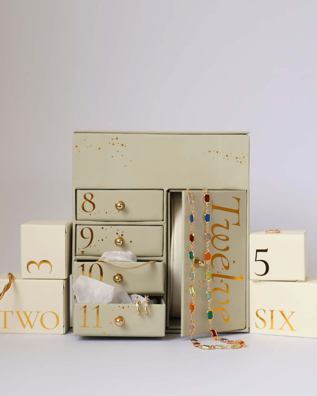 Enjoy 12 days of surprise jewellery pieces, with your choice of finish. Handpicked to bring you a little sparkle this holiday season.