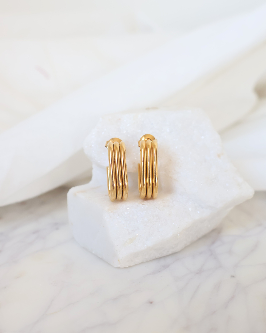 Made of Stainless Gold & Silver. Golds may appear different to our gold filled pieces, due to the metal type.