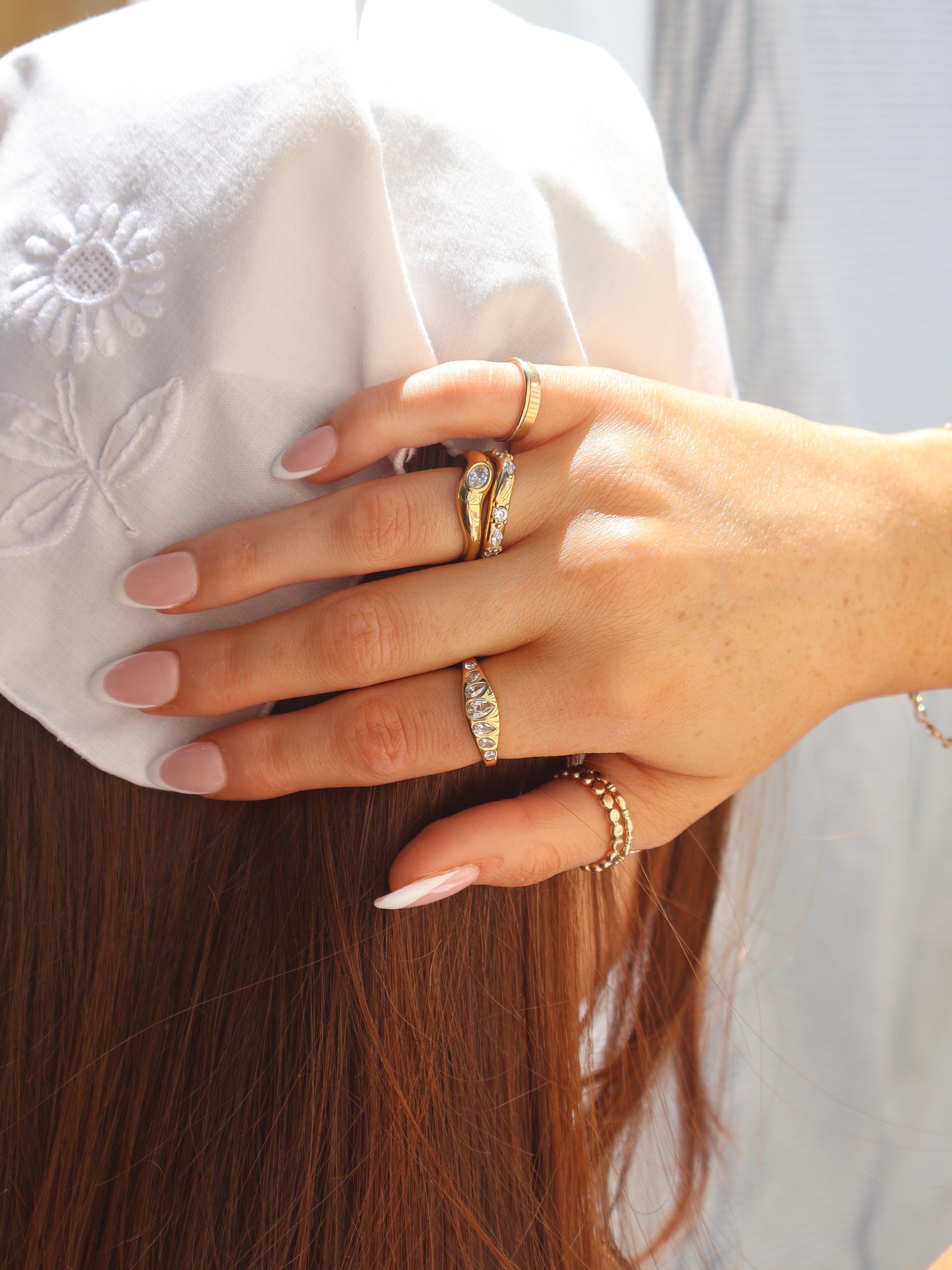 Romantic, timeless and vintage inspired, the Lucia Ring is a piece designed to be treasured. Featuring sparkling CZ stones set amongst organic curves, our Lucia brings a sparkle solo or paired with your FinerRings stack.