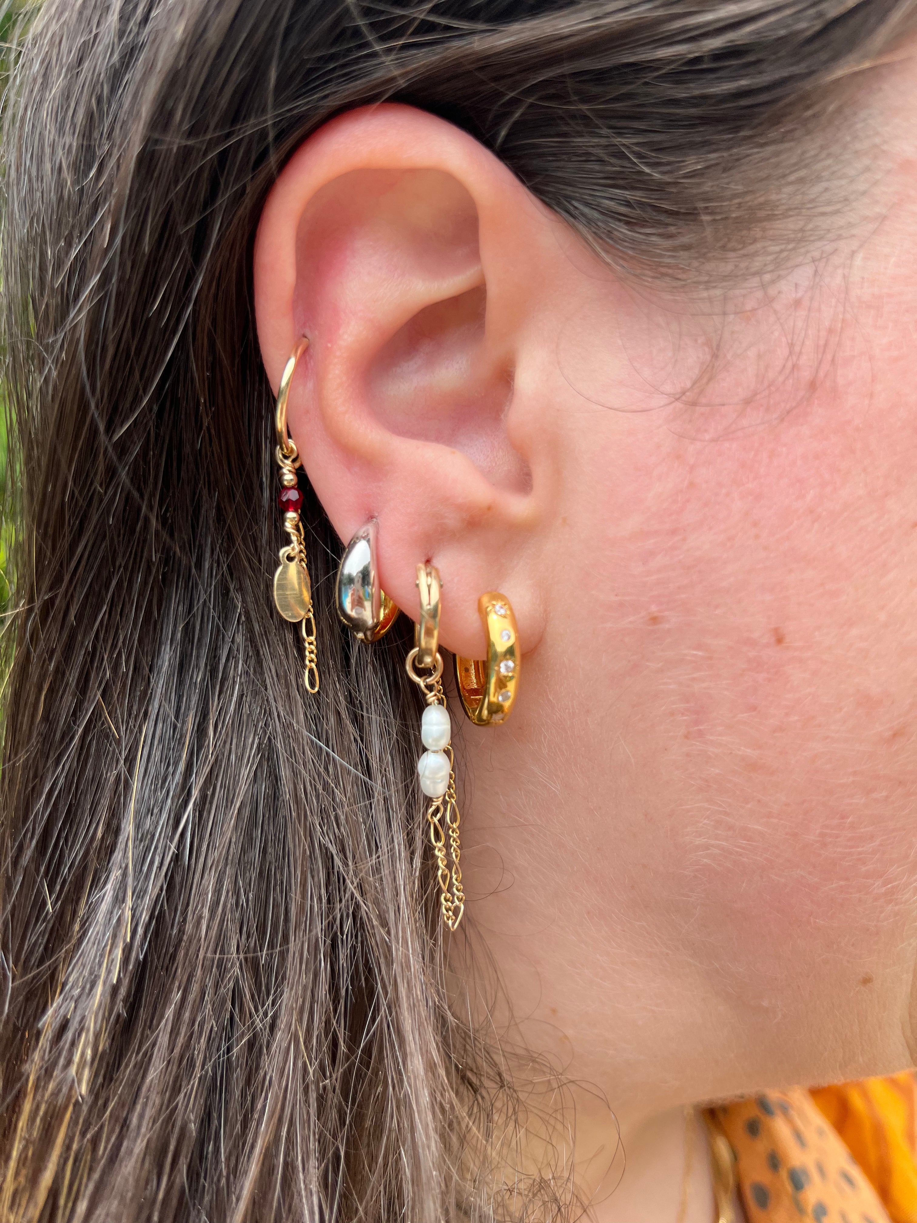 Gold Filled is made by pressure bonding a super thick layer of pure gold over silver. This means that the product acts and wears like pure gold & is waterproof. It also makes items hypoallergenic and great for sensitive skin.