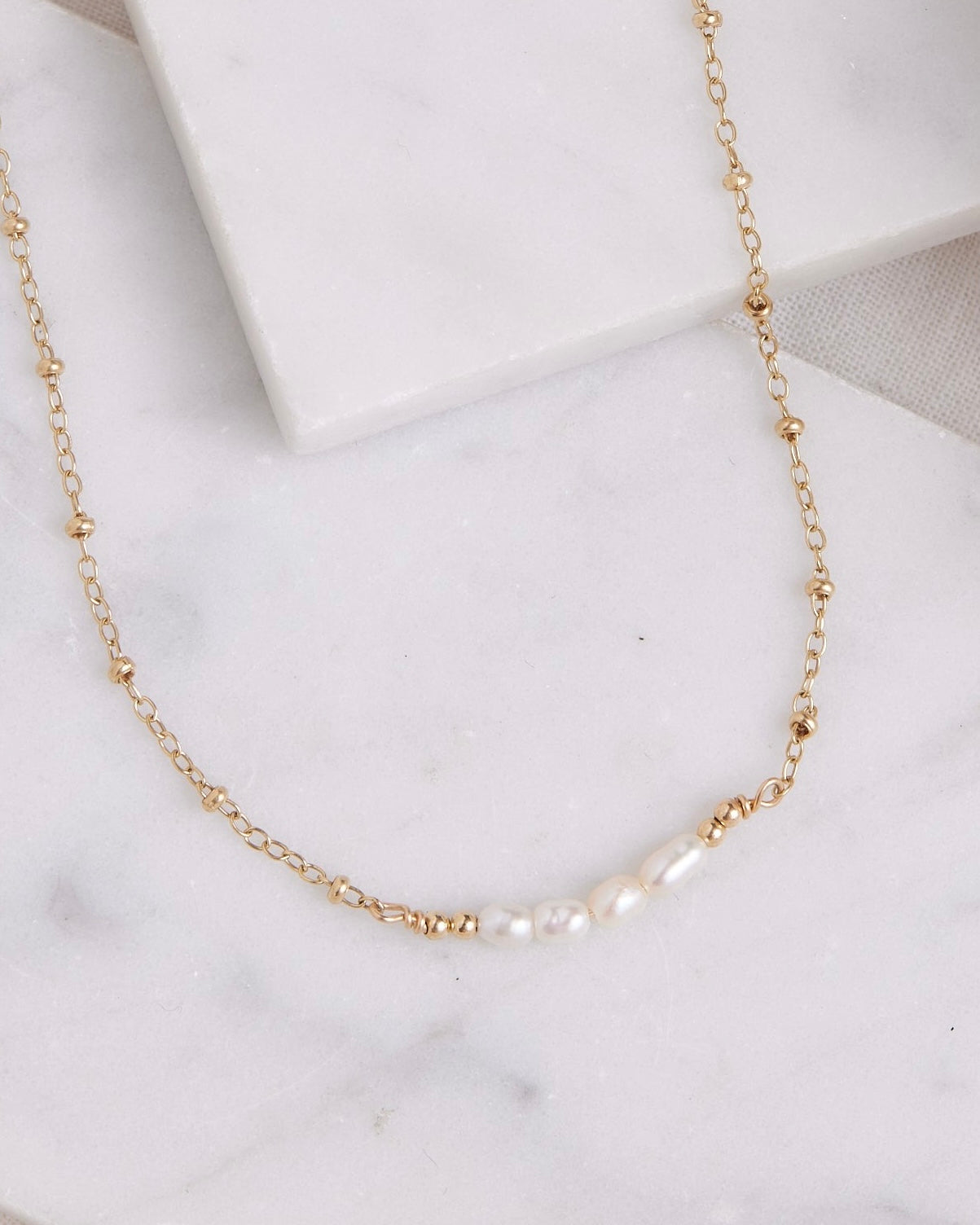 Crafted from 14k Gold Filled or 925 Sterling Silver and genuine freshwater pearls, this necklace is designed to resist rust and tarnish - even in water.