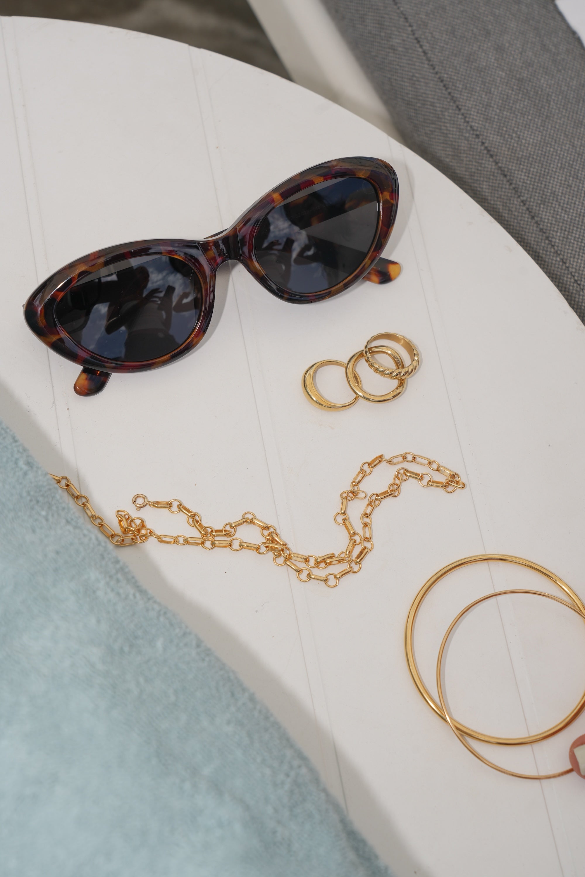 Elevate your style with our Evie sunglasses - where refined design meets exceptional craftsmanship. Featuring sophisticated FinerRings engravings along the sides and round cat-eye frames, these sunglasses add a touch of timeless elegance to every look. These come in tortoise shell and latte.