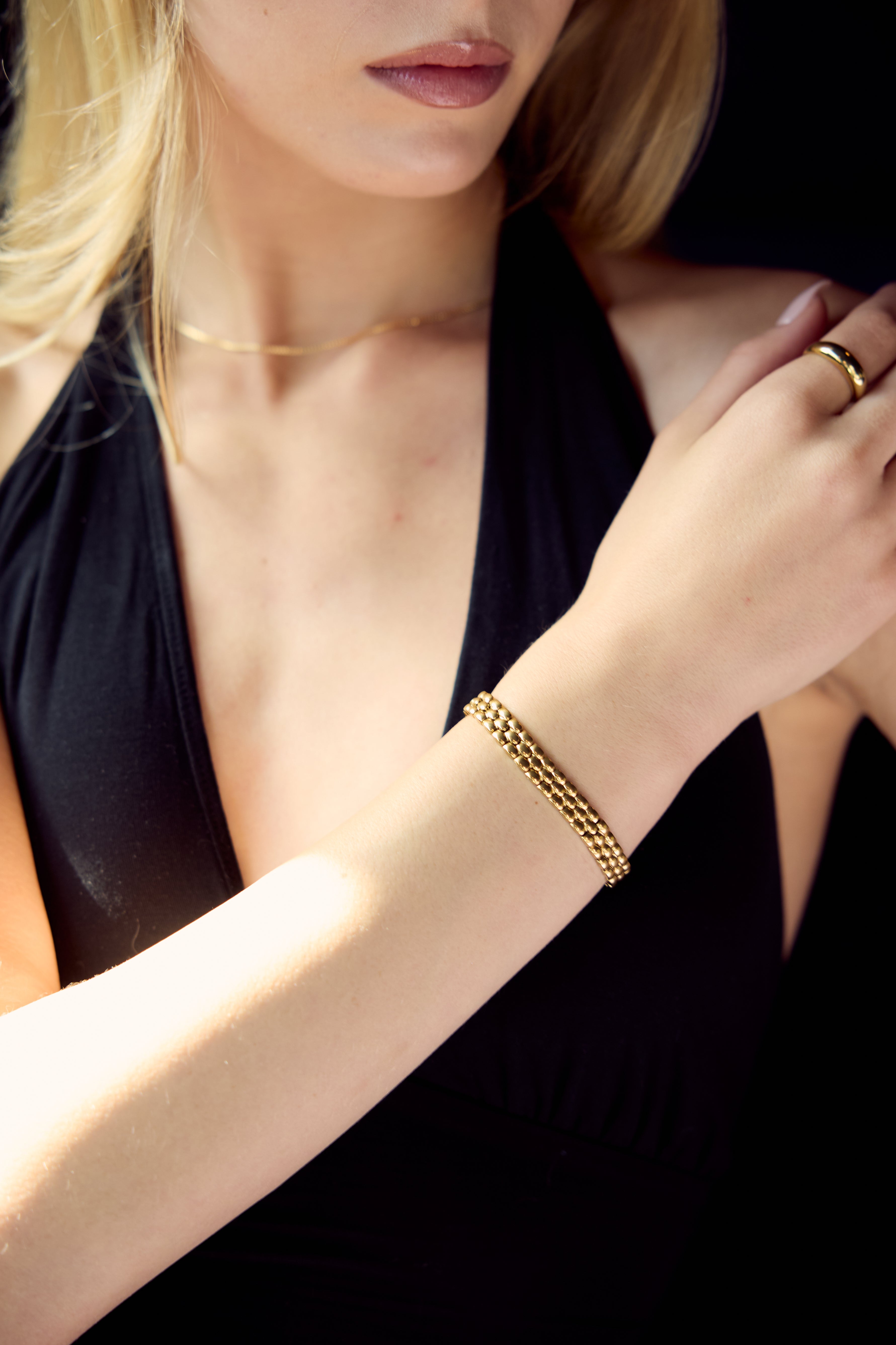 Crafted from 18k gold-plated stainless steel, it’s designed to be both durable and versatile - a timeless staple for any jewellery collection. Each band comes with our resizing tool, so you can achieve the perfect fit.
