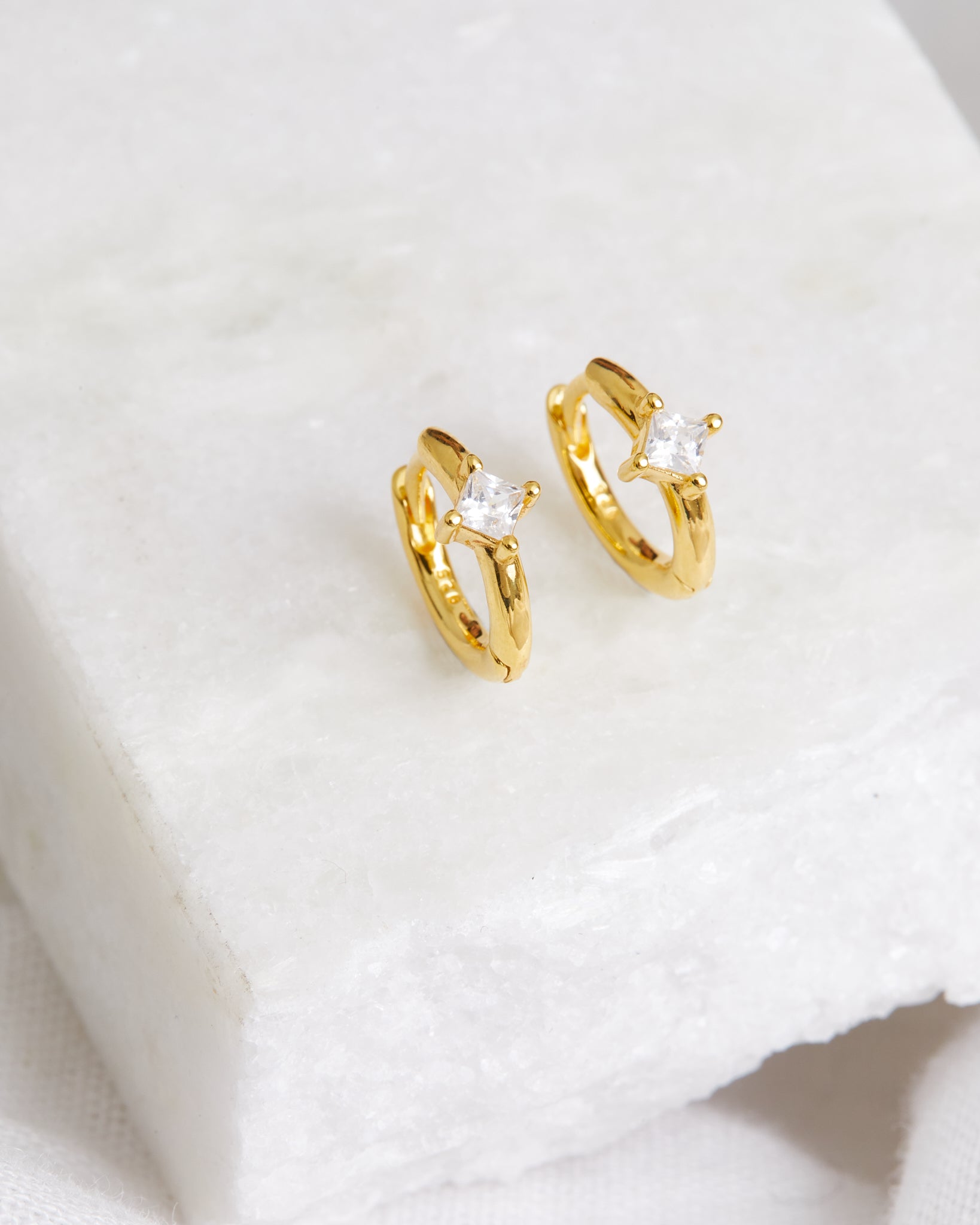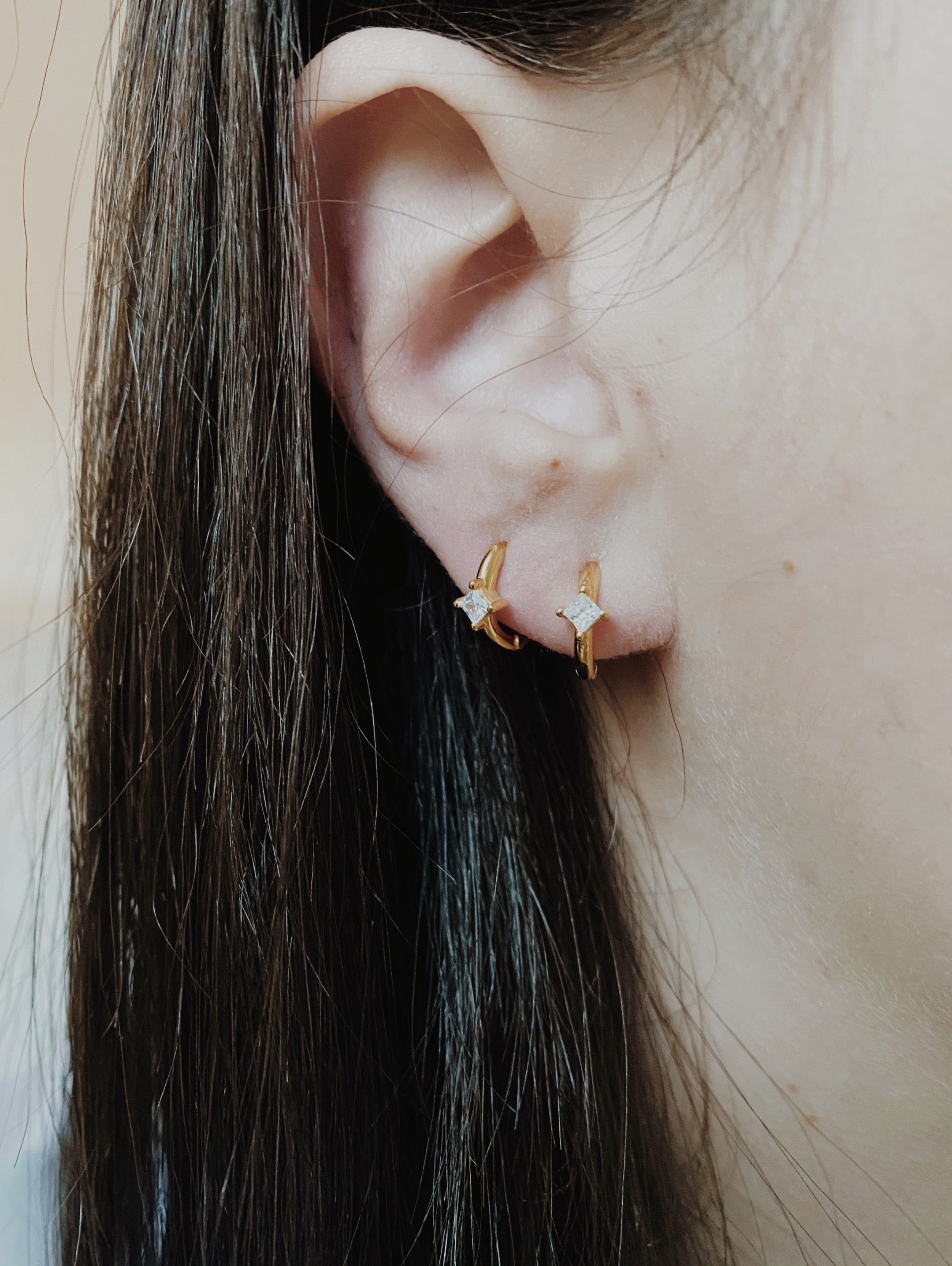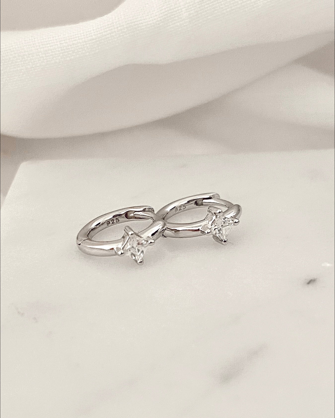 Features beautiful little single princess cut CZ - total hoop internal diameter is 10mm